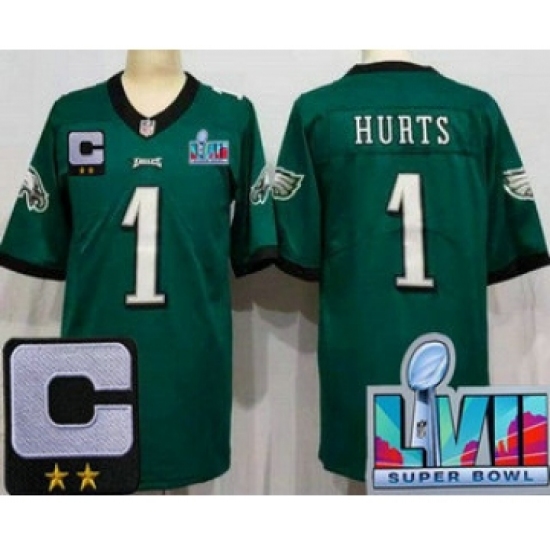Men's Philadelphia Eagles #1 Jalen Hurts Limited Green C Patch Super Bowl LVII Vapor Jersey
