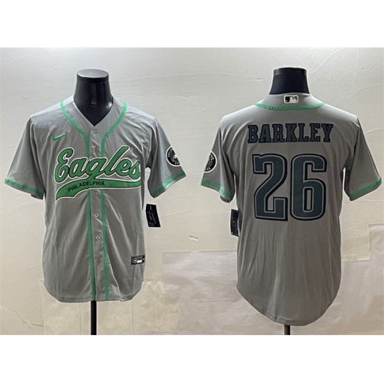 Men's Philadelphia Eagles #26 Saquon Barkley Gray Cool Base Stitched Baseball Jersey