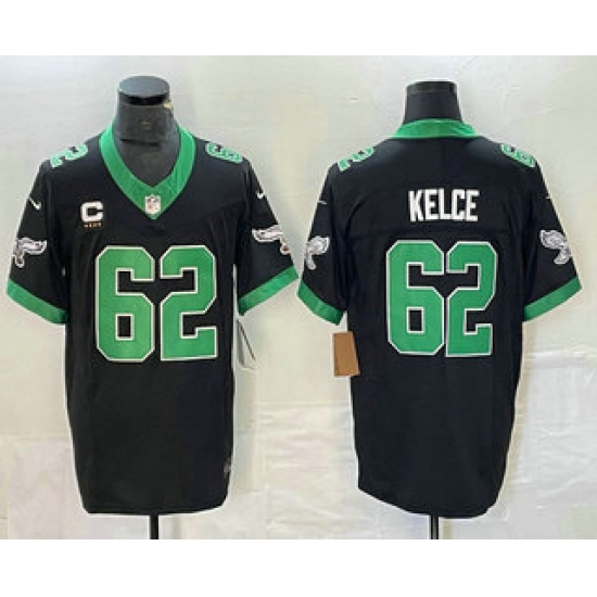 Men's Philadelphia Eagles #62 Jason Kelce Black C 2023 FUSE Vapor Limited Throwback Stitched Jersey