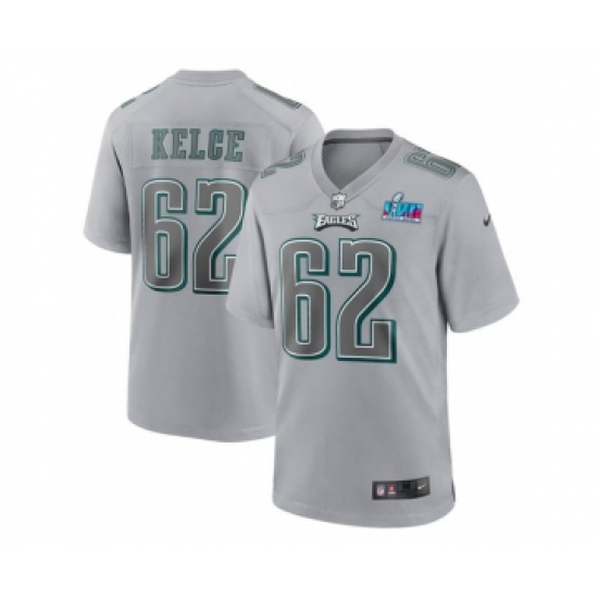 >Men's Philadelphia Eagles #62 Jason Kelce Gray Super Bowl LVII Atmosphere Fashion Stitched Game Jersey