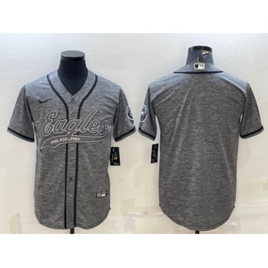 Men's Philadelphia Eagles Grey Team Big Logo With Patch Cool Base Stitched Baseball Jersey