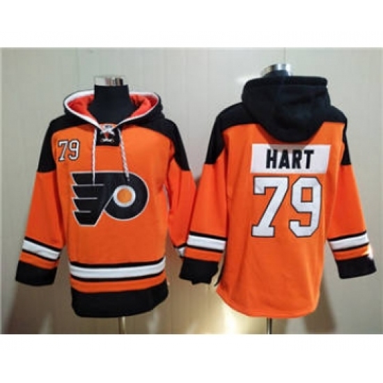 >Men's Philadelphia Flyers #79 Carter Hart Orange Ageless Must-Have Lace-Up Pullover Hockey Hoodie
