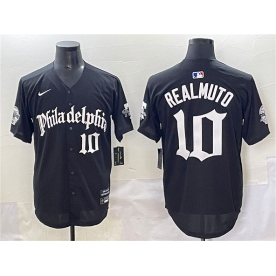 >Men's Philadelphia Phillies #10 J.T. Realmuto Black Gothic Vapor Limited Stitched Jersey