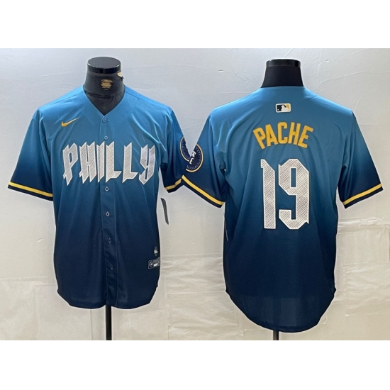 >Men's Philadelphia Phillies #19 Cristian Pache Blue 2024 City Connect Limited Stitched Jersey