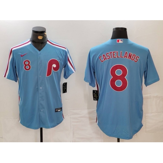 >Men's Philadelphia Phillies #8 Nick Castellanos Number Light Blue Cooperstown Cool Base Jersey