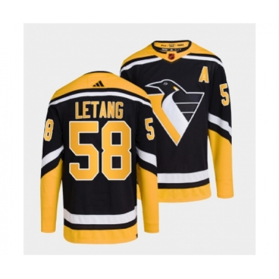 Men's Pittsburgh Penguins #58 Kris Letang Black 2022 Reverse Retro Stitched Jersey