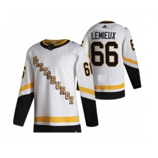 Men's Pittsburgh Penguins #66 Mario Lemieux White 2020-21 Reverse Retro Alternate Hockey Jersey