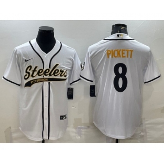 >Men's Pittsburgh Steelers #8 Kenny Pickett White Cool Base Stitched Baseball Jersey