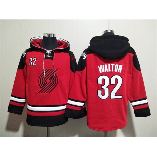 Men's Portland Trail Blazers #32 Bill Walton Red Lace-Up Pullover Hoodie