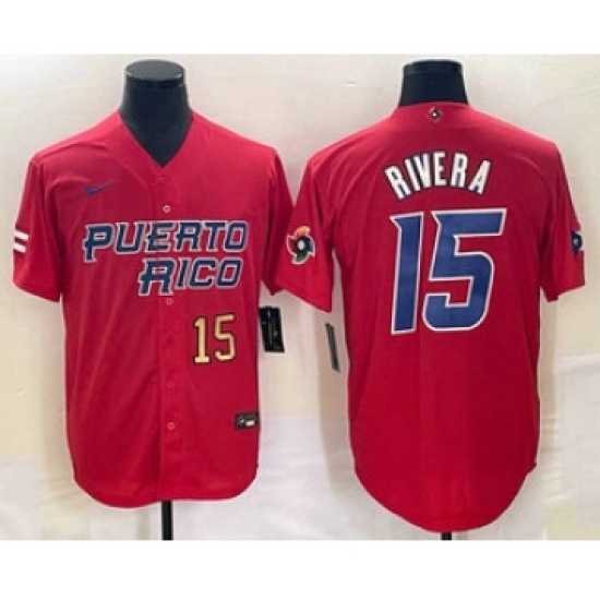 >Men's Puerto Rico Baseball #15 Emmanuel Rivera Number 2023 Red World Classic Stitched Jerseys