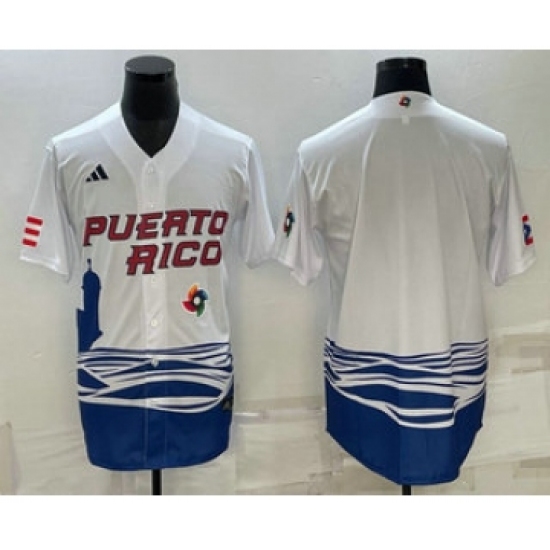 >Men's Puerto Rico Baseball Blank White 2023 World Baseball Classic Stitched Jersey