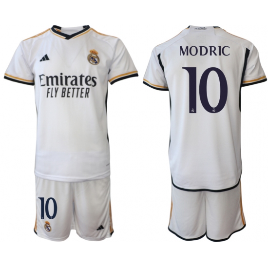 >Men's Real Madrid #10 Modric 2023-24 White Home Soccer Jersey
