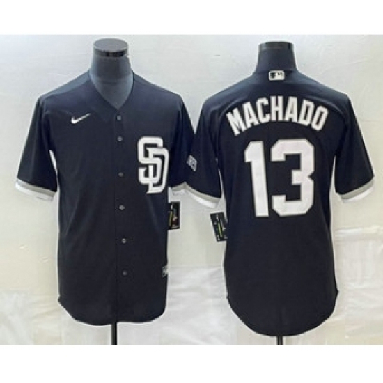 >Men's San Diego Padres #13 Manny Machado Black 2023 Cool Base Stitched Jersey 1