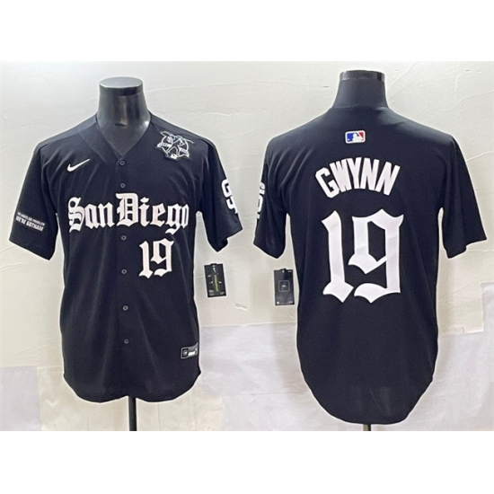 Men's San Diego Padres #19 Tony Gwynn Black Gothic Edition Vapor Limited Stitched Baseball Jersey
