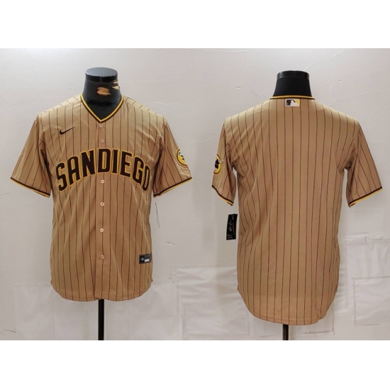 >Men's San Diego Padres Blank Tan Cool Base Stitched Jersey