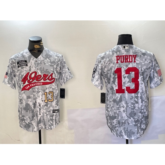 >Men's San Francisco 49ers #13 Brock Purdy Arctic Camo 2024 Salute to Service Stitched Baseball Jerseys