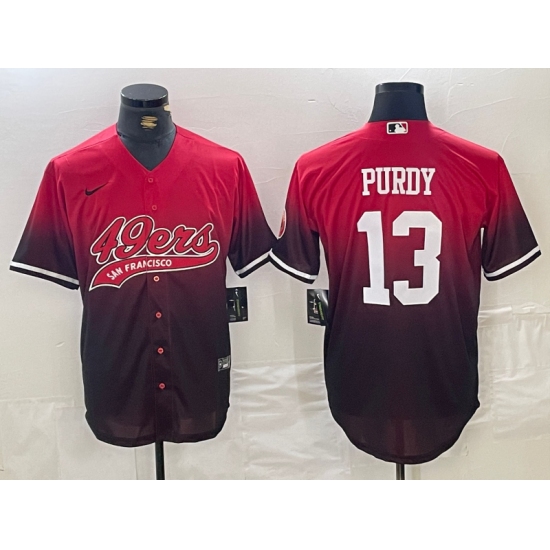 Men's San Francisco 49ers #13 Brock Purdy Red Black Stitched Baseball Jersey