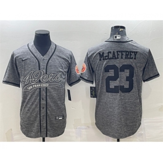 Men's San Francisco 49ers #23 Christian McCaffrey Gray With Patch Cool Base Stitched Baseball Jersey