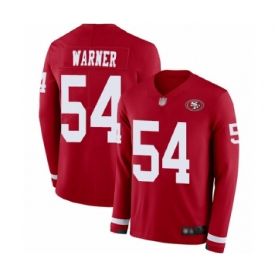 >Men's San Francisco 49ers #54 Fred Warner Limited Red Therma Long Sleeve Football Jerse