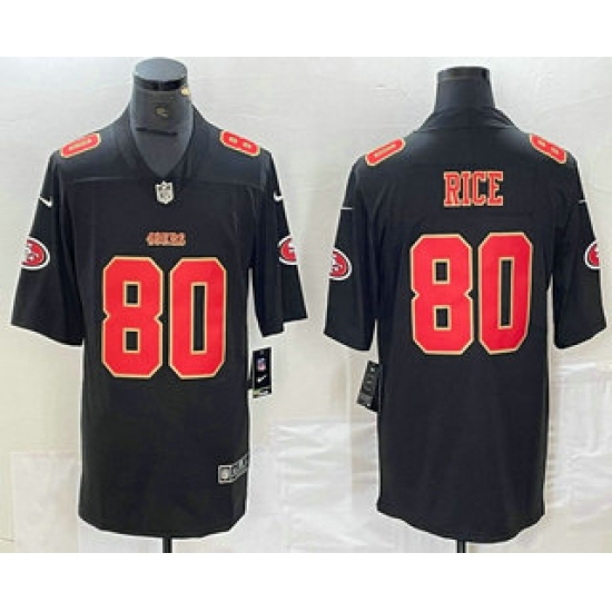 >Men's San Francisco 49ers #80 Jerry Rice Black Red Fashion Vapor Limited Stitched Jersey