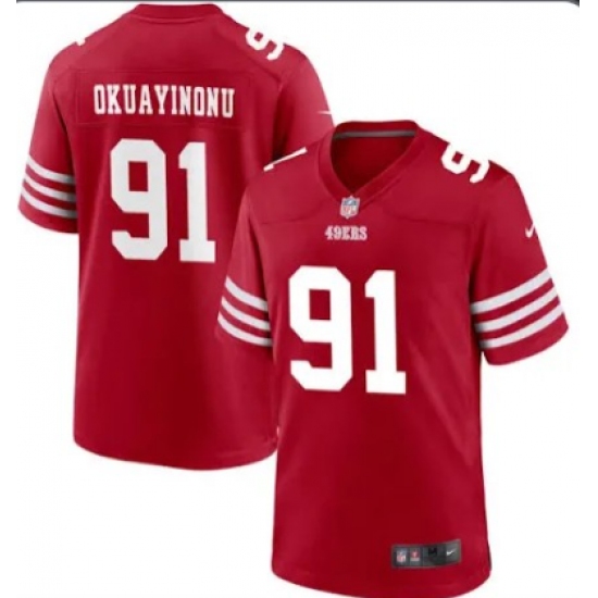Mens San Francisco 49ers #91 Sam Okuayinonu Red Vapor Untouchable Limited Stitched Football Jersey