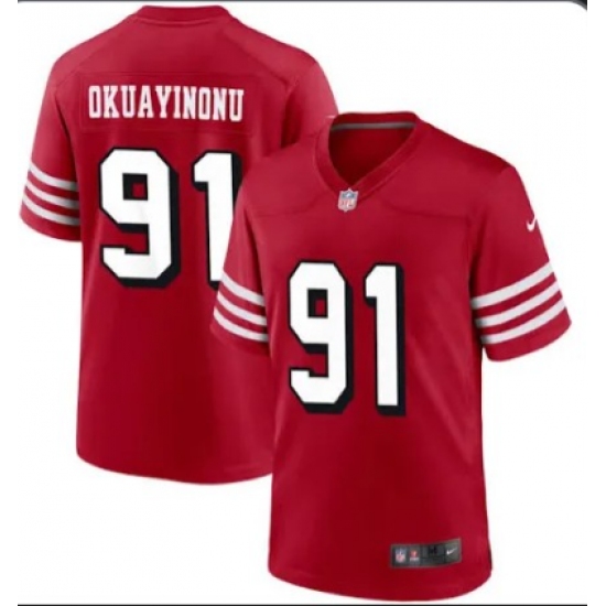 >Men's San Francisco 49ers #91 Sam Okuayinonu Red Vapor Untouchable Limited Stitched Football Jerseys