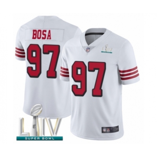 Men's San Francisco 49ers #97 Nick Bosa Limited White Rush Vapor Untouchable Super Bowl LIV Bound Football Jersey