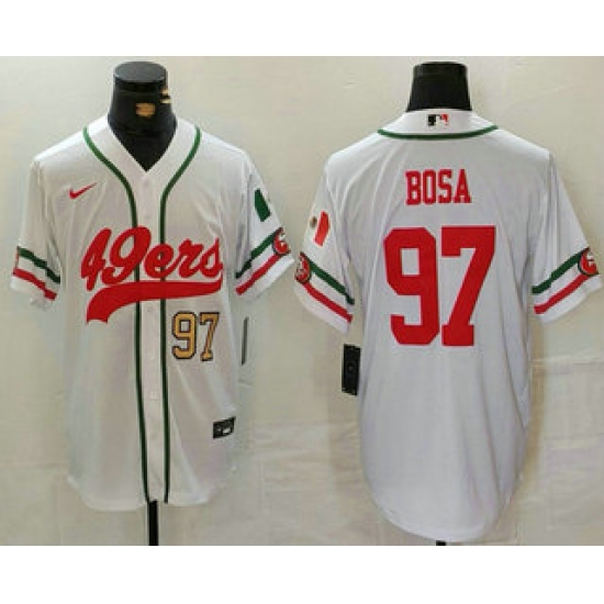 Men's San Francisco 49ers #97 Nick Bosa Number White Mexico Cool Base Stitched Baseball Jersey
