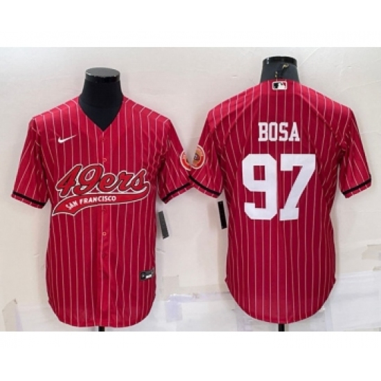 Men's San Francisco 49ers #97 Nick Bosa Red With Patch Cool Base Stitched Baseball Jersey