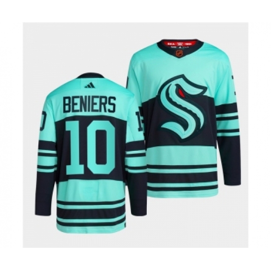 >Men's Seattle Kraken #10 Matty Beniers Ice Blue 2022-23 Reverse Retro Stitched Jersey