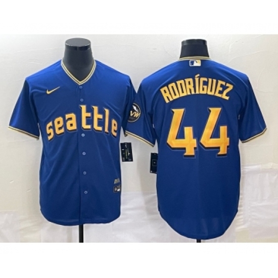 Men's Seattle Mariners #44 Julio Rodriguez Blue 2023 City Connect Cool Base Stitched Jersey