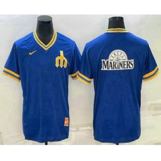 >Men's Seattle Mariners Big Logo Blue Nike Cooperstown Collection Legend V Neck Jersey