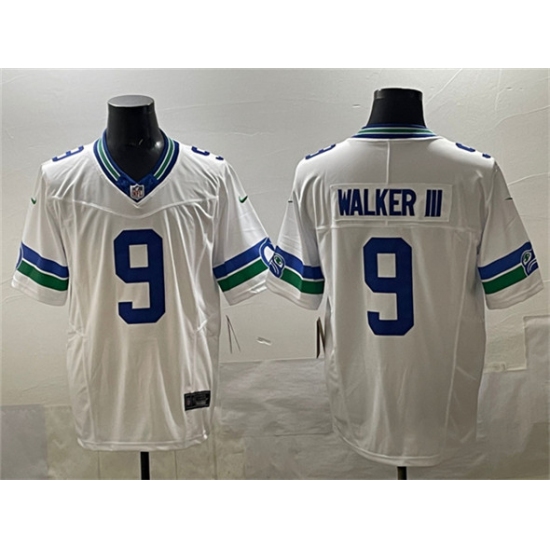 Men's Seattle Seahawks #9 Kenneth Walker III White F.U.S.E. Throwback Vapor Limited Football Stitched Jersey