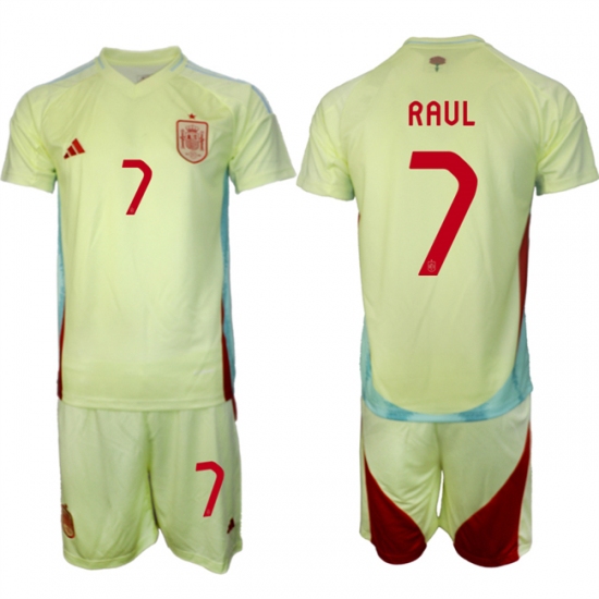 Men's Spain Team #7 Raúl 2024-25 Yellow Away Soccer Jersey Suit
