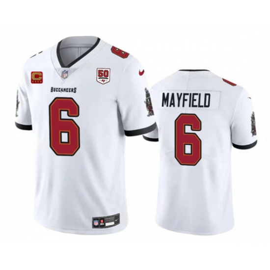 Men's Tampa Bay Buccaneers #6 Baker Mayfield White 2025 50th Anniversary And 4-Star C Vapor Untouchable Limited Football Stitched Jersey
