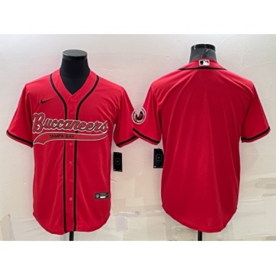 Men's Tampa Bay Buccaneers Red Team Big Logo With Patch Cool Base Stitched Baseball Jersey