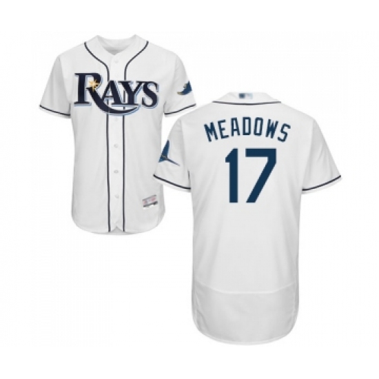>Men's Tampa Bay Rays #17 Austin Meadows Home White Home Flex Base Authentic Collection Baseball Jersey