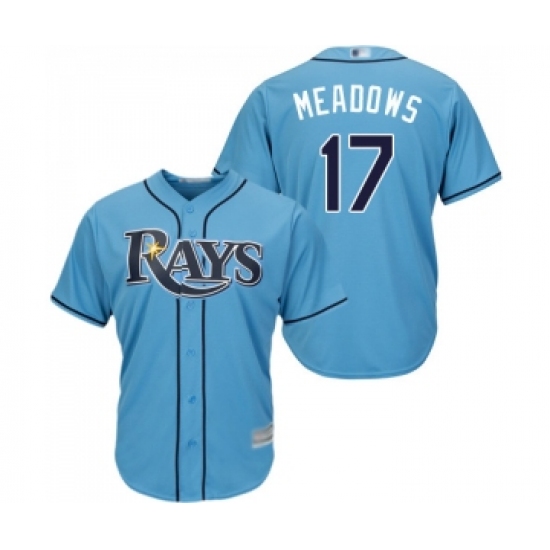 >Men's Tampa Bay Rays #17 Austin Meadows Replica Light Blue Alternate 2 Cool Base Baseball Jersey