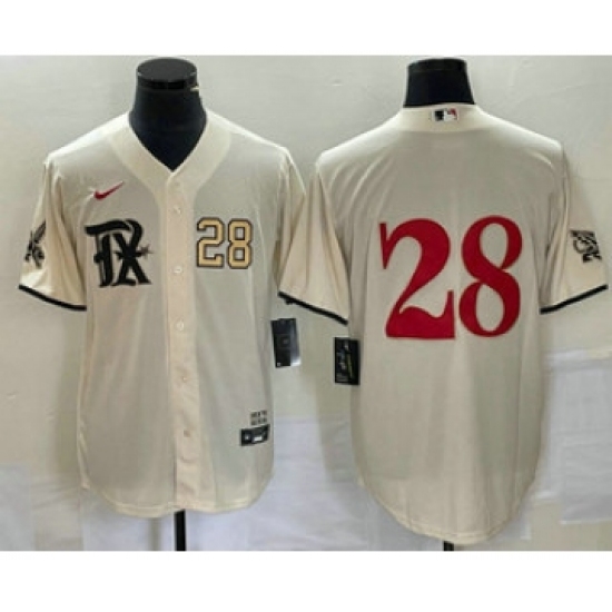 >Men's Texas Rangers #28 Jonah Heim Number Cream 2023 City Connect Cool Base Stitched Baseball Jersey