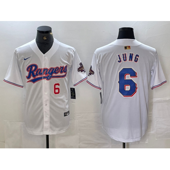 Men's Texas Rangers #6 Josh Jung Number White 2023 World Series Champions Cool Base Jerseys
