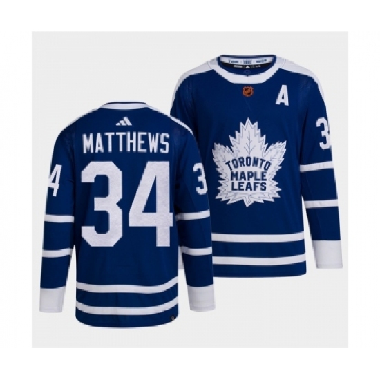 Men's Toronto Maple Leafs Black #34 Auston Matthews Blue 2022 Reverse Retro Stitched Jersey