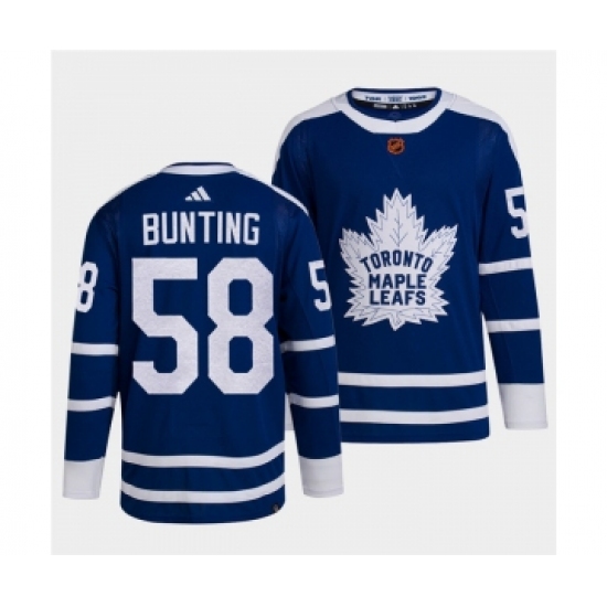 >Men's Toronto Maple Leafs Black #58 Michael Bunting Blue 2022 Reverse Retro Stitched Jersey