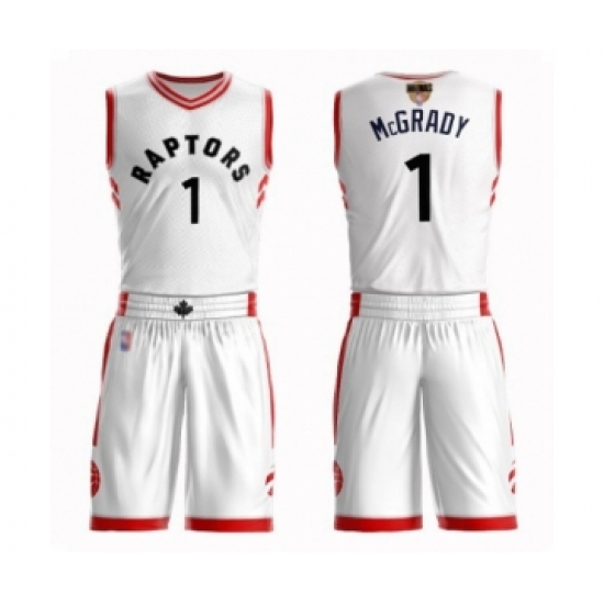 >Men's Toronto Raptors #1 Tracy Mcgrady Swingman White 2019 Basketball Finals Bound Suit Jersey - Association Edition