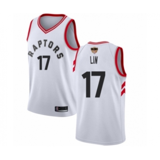>Men's Toronto Raptors #17 Jeremy Lin Swingman White 2019 Basketball Finals Bound Jersey - Association Edition