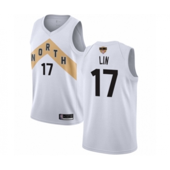 >Men's Toronto Raptors #17 Jeremy Lin Swingman White 2019 Basketball Finals Bound Jersey - City Edition