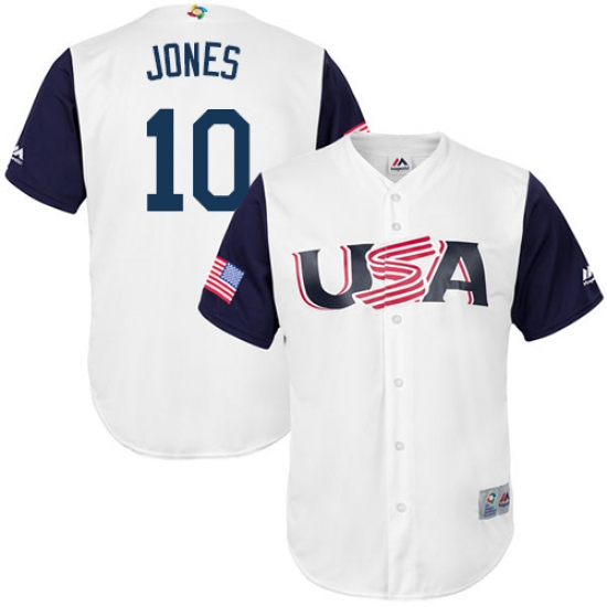 Men's USA Baseball Majestic #10 Adam Jones White 2017 World Baseball Classic Replica Team Jersey