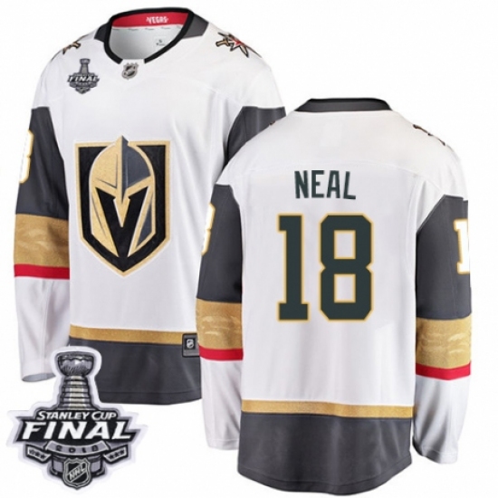 >Men's Vegas Golden Knights #18 James Neal Authentic White Away Fanatics Branded Breakaway 2018 Stanley Cup Final NHL Jersey