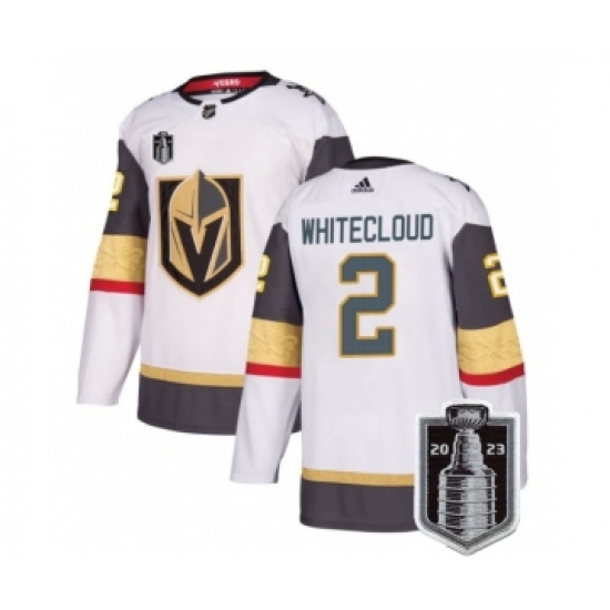 Men's Vegas Golden Knights #2 Zach Whitecloud White 2023 Stanley Cup Final Stitched Jersey