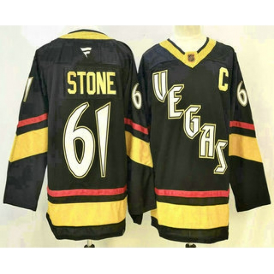 >Men's Vegas Golden Knights #61 Mark Stone Black Reverse Retro Authentic Jersey