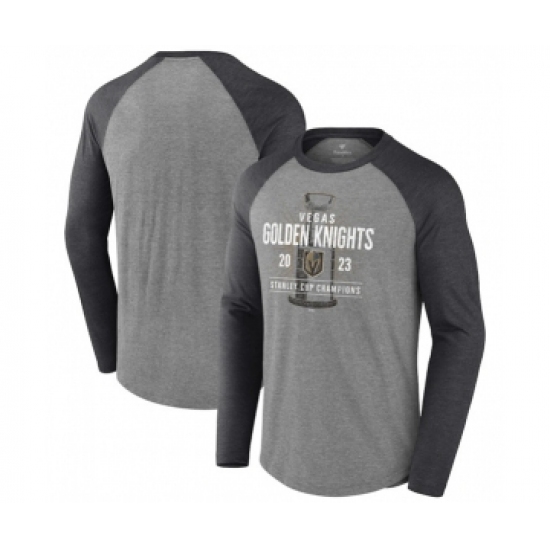 Men's Vegas Golden Knights Heather Gray 2023 Stanley Cup Champions Shootout Long Sleeve T-Shirt